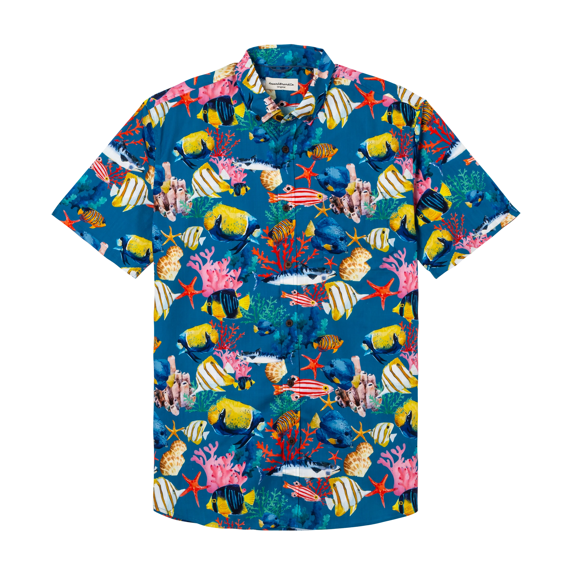 Hawaiian Shirt For Men Colorful Printing-Match Button-down 100% Cotton Short Sleeve Shirt Blue Tropical Ocean