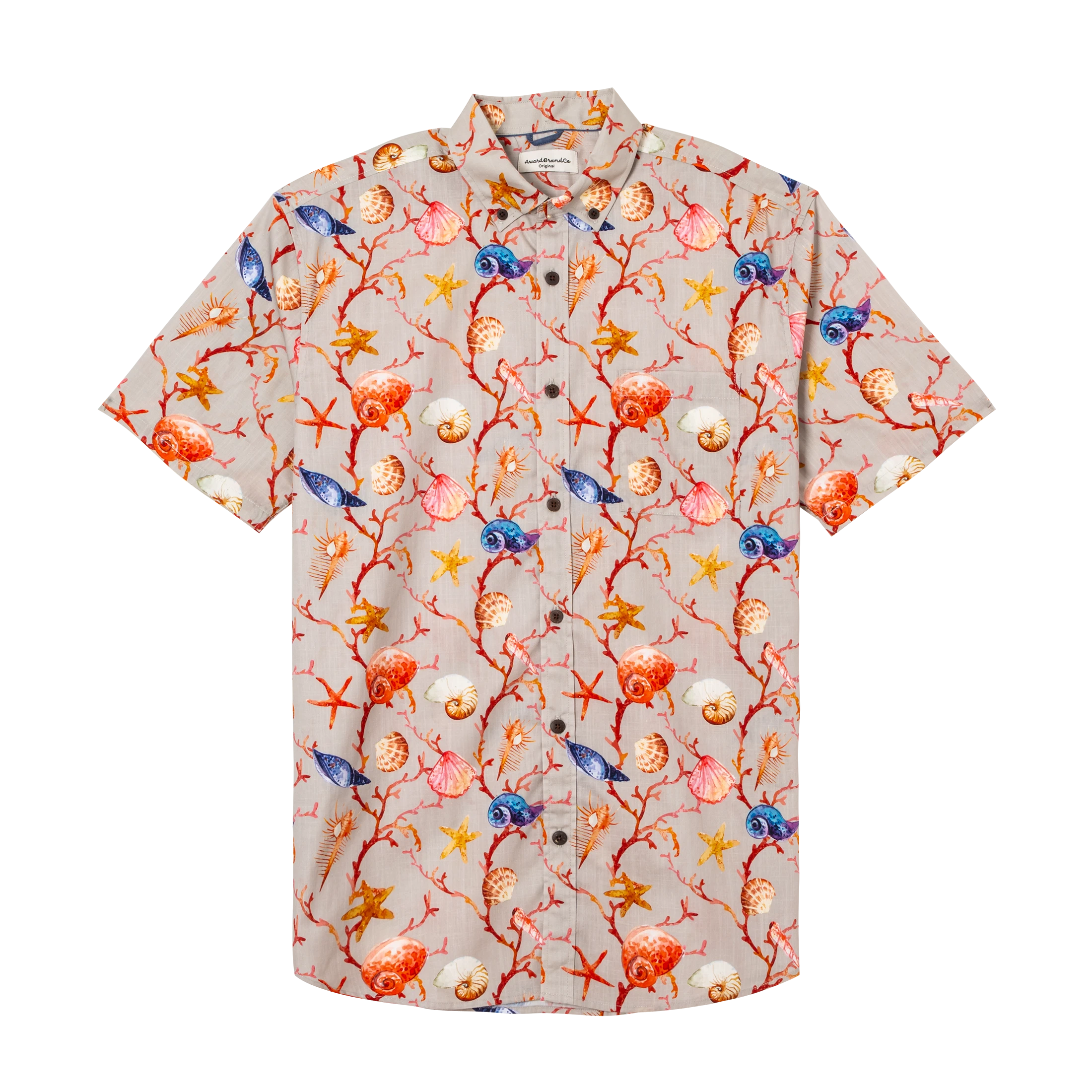 Hawaiian Shirt For Men Colorful Printing-Match Button-down 100% Cotton Short Sleeve Shirt Sand color Tropical Shell