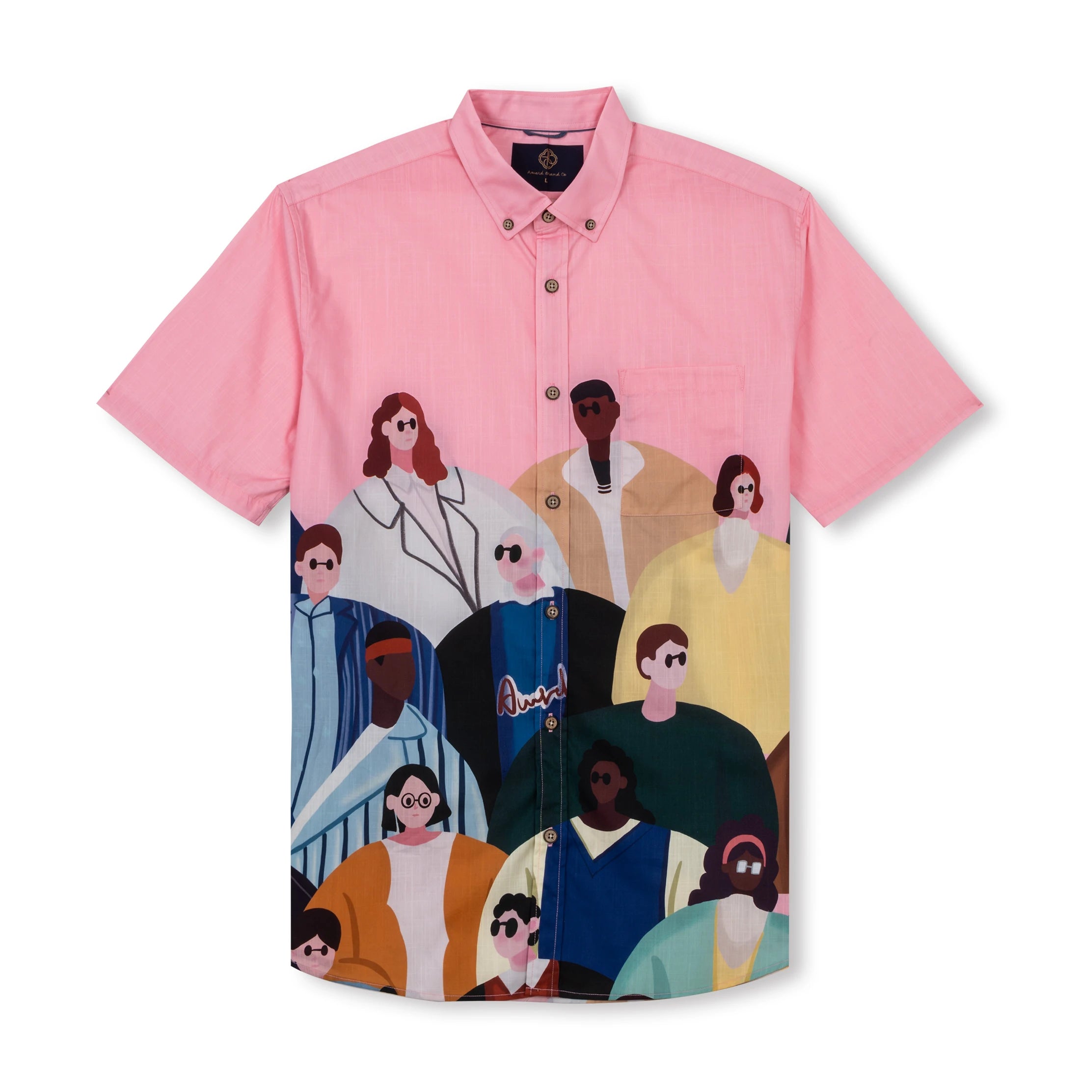 Hawaiian Shirt For Men Colorful Printing-Match Button-down 100% Cotton Short Sleeve Shirt