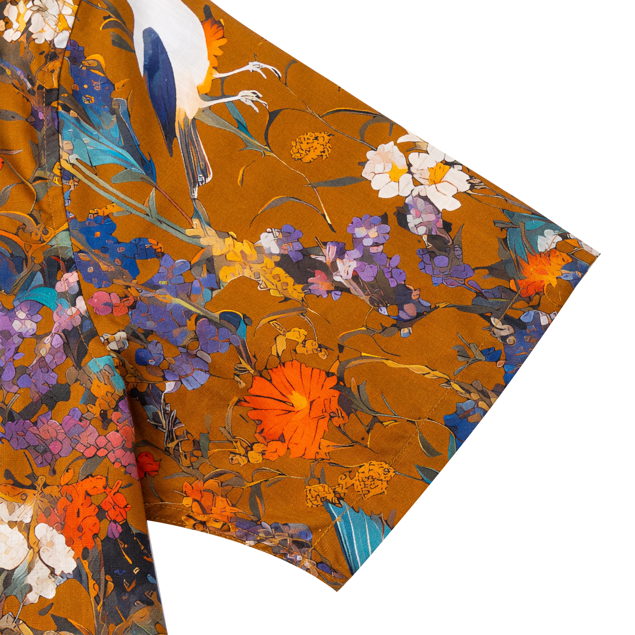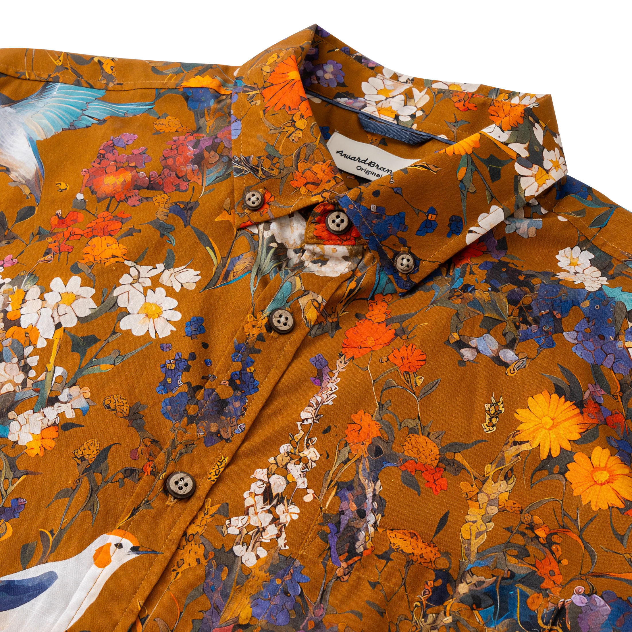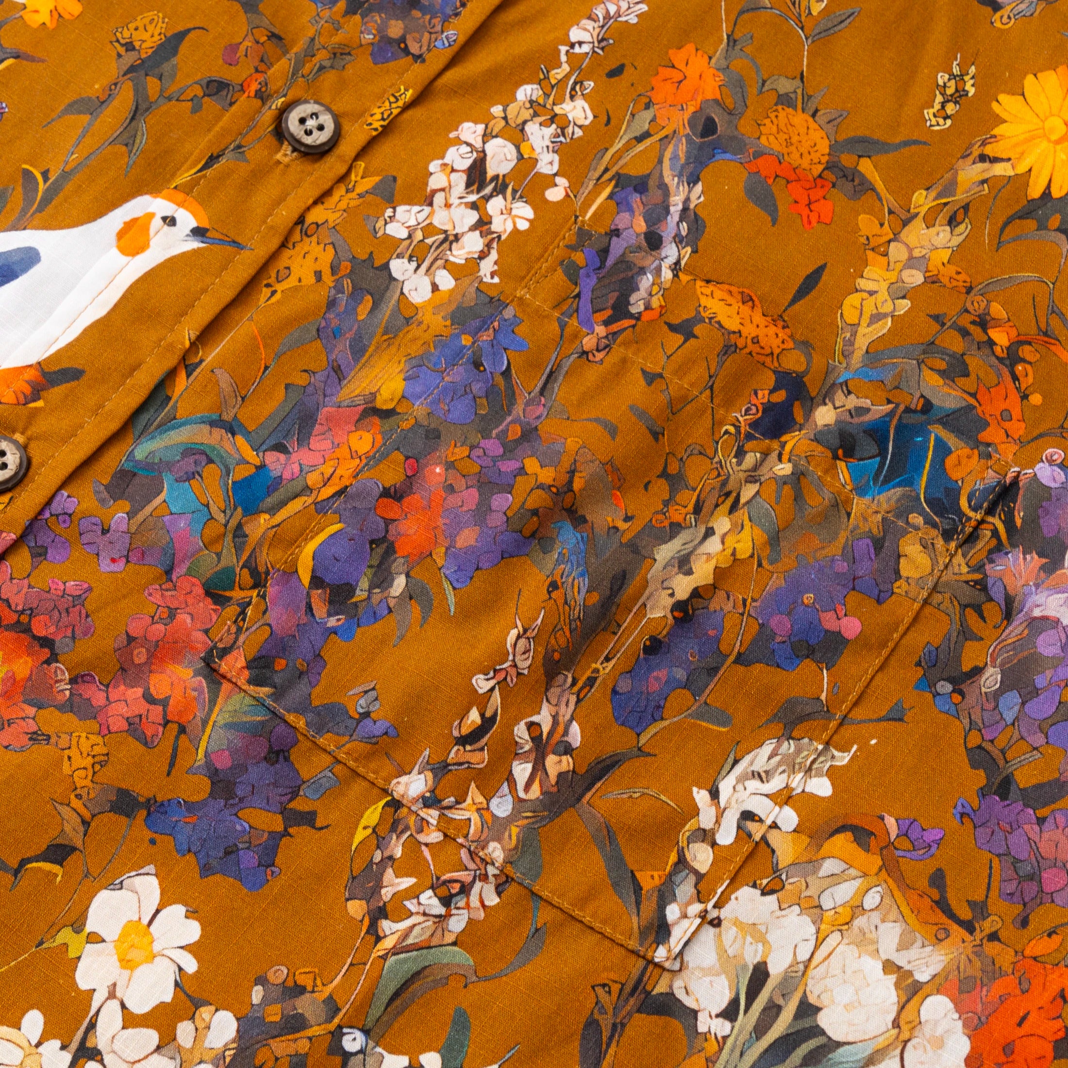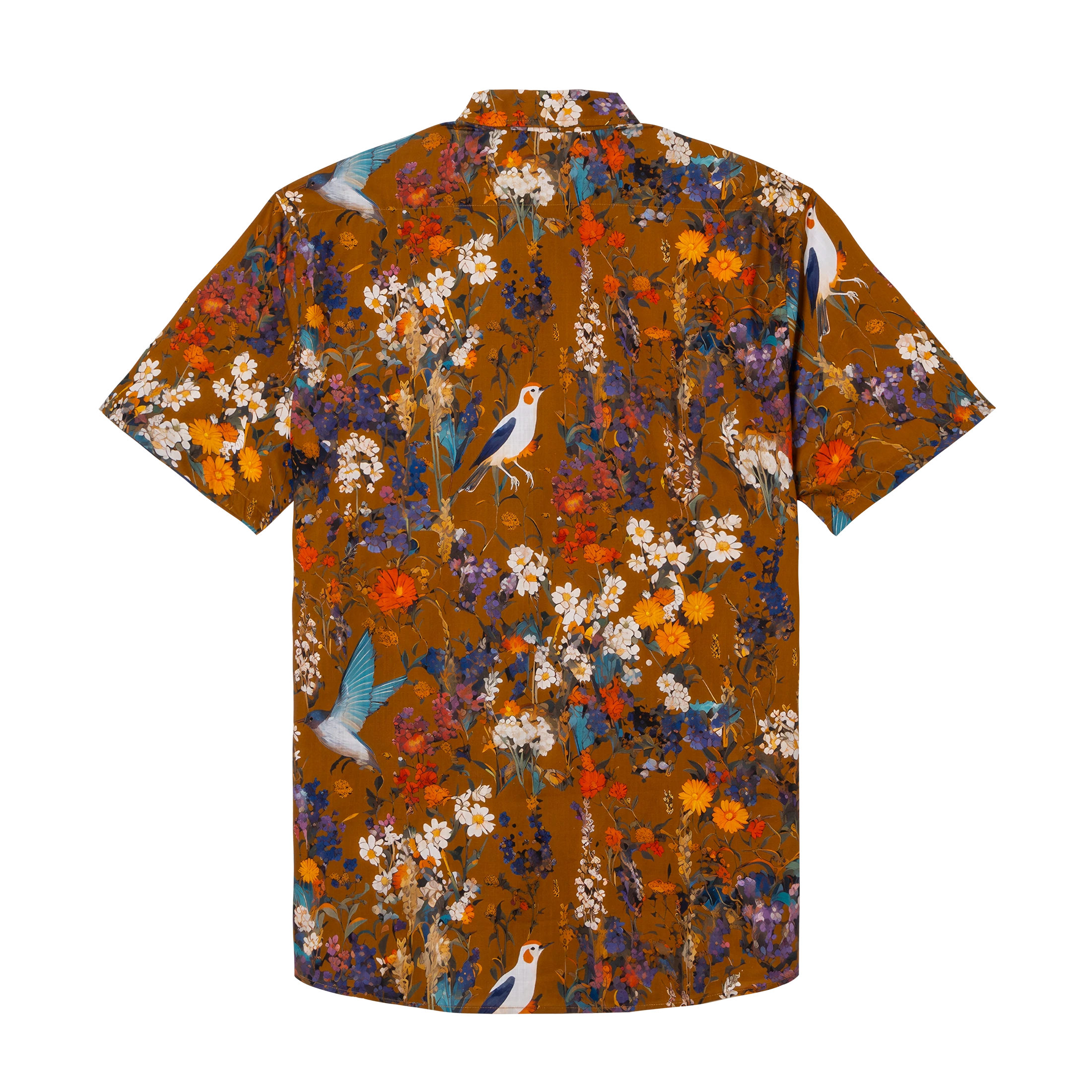 Hawaiian Shirt For Men Colorful Printing-Match Button-down 100% Cotton Short Sleeve Shirt Brown Floral Bird