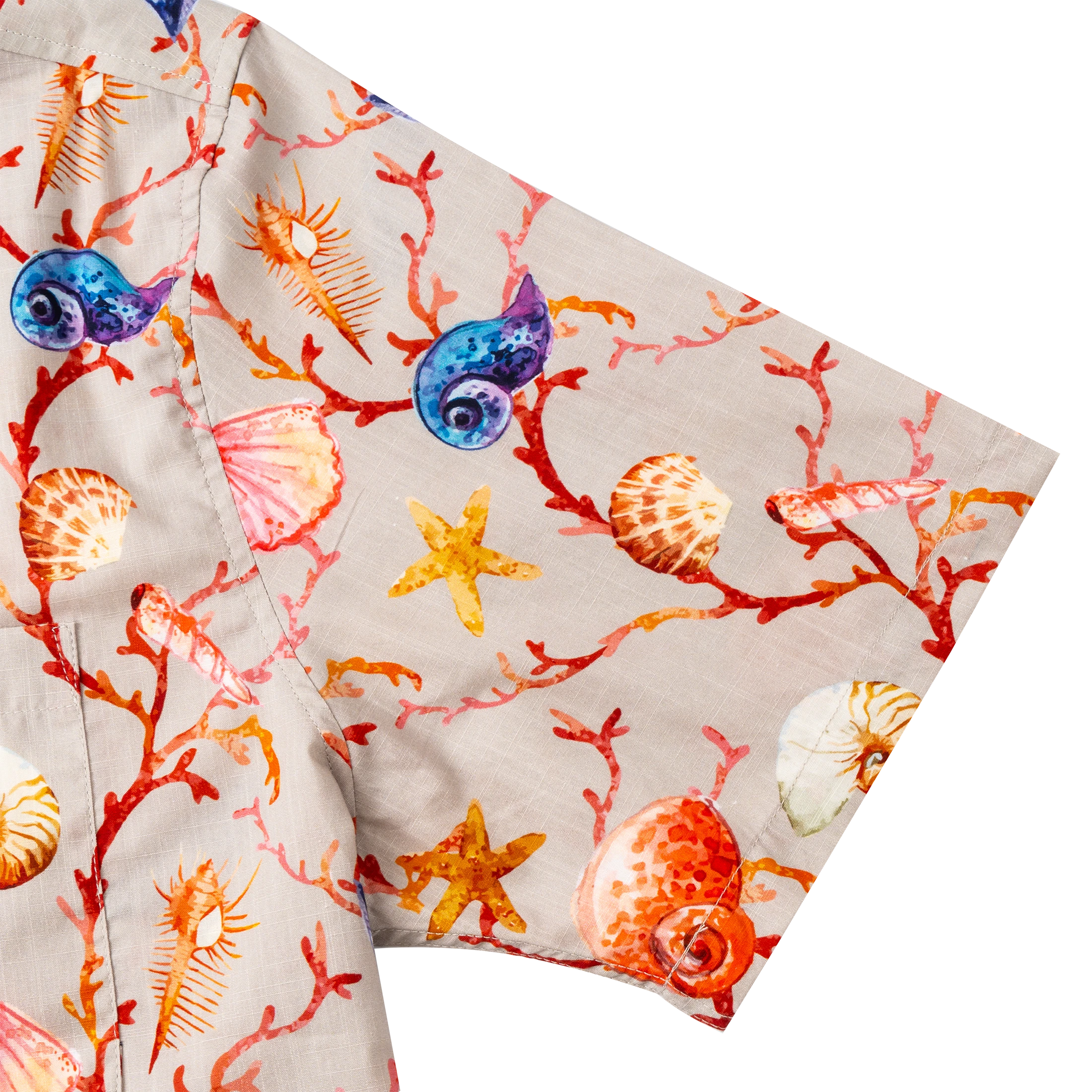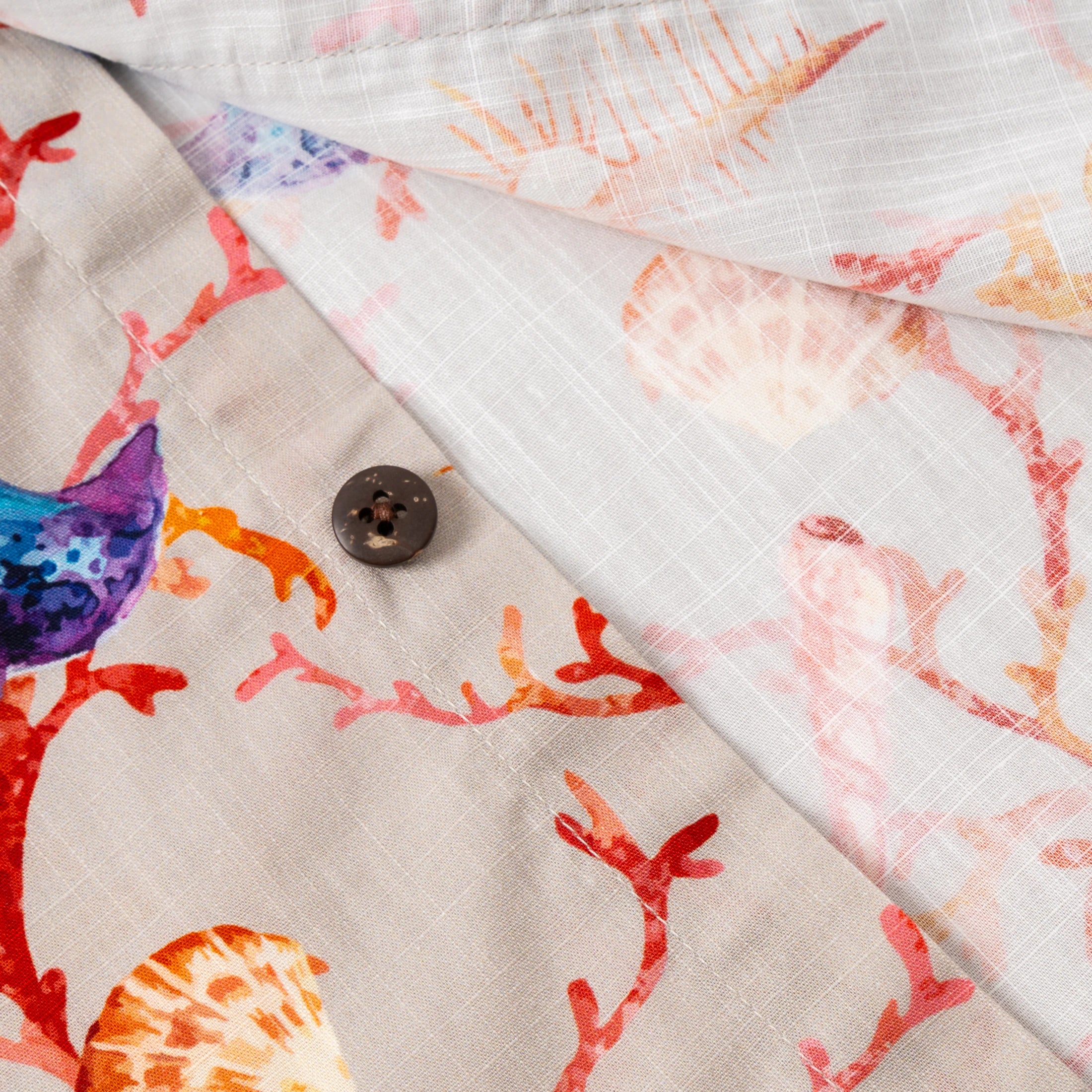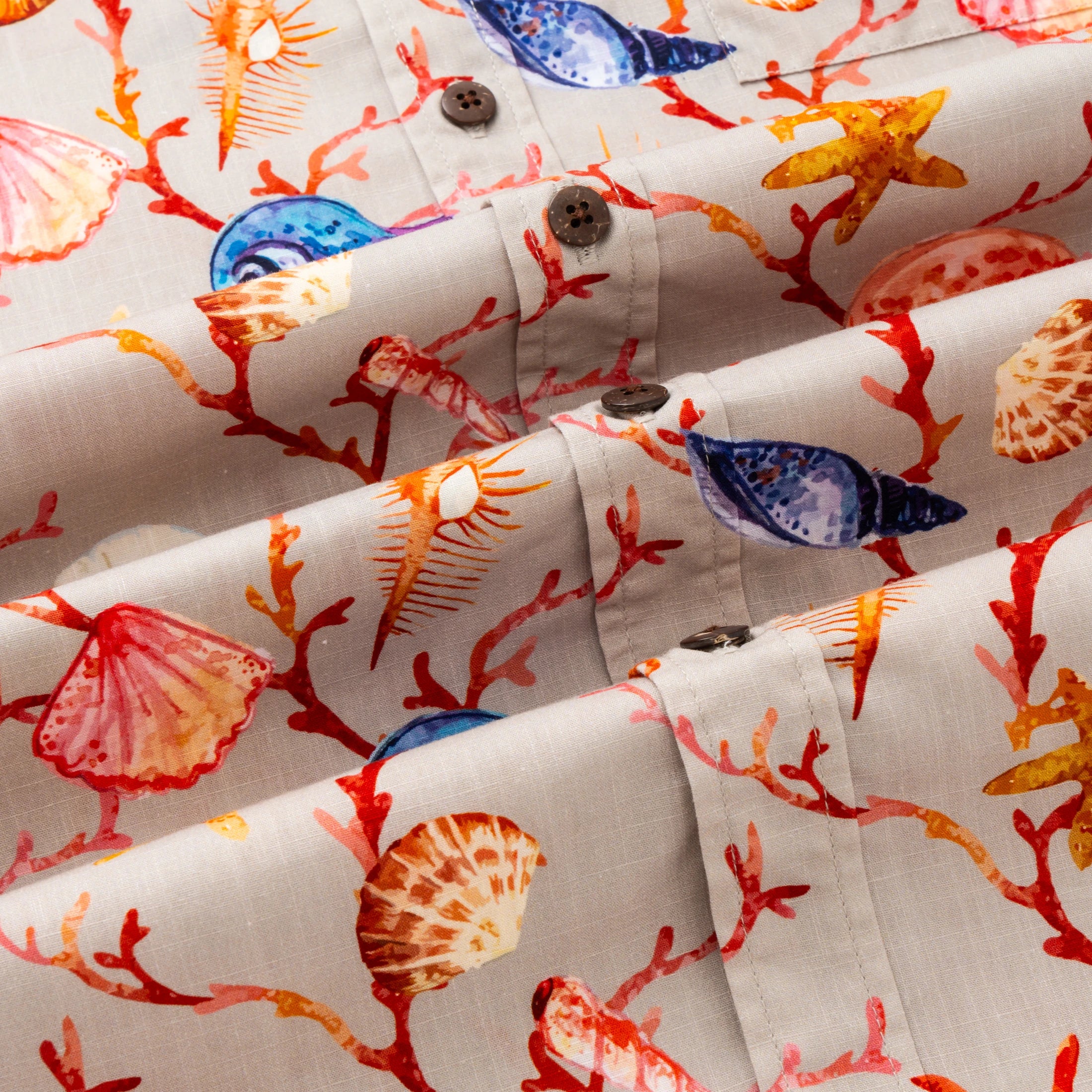 Hawaiian Shirt For Men Colorful Printing-Match Button-down 100% Cotton Short Sleeve Shirt Sand color Tropical Shell