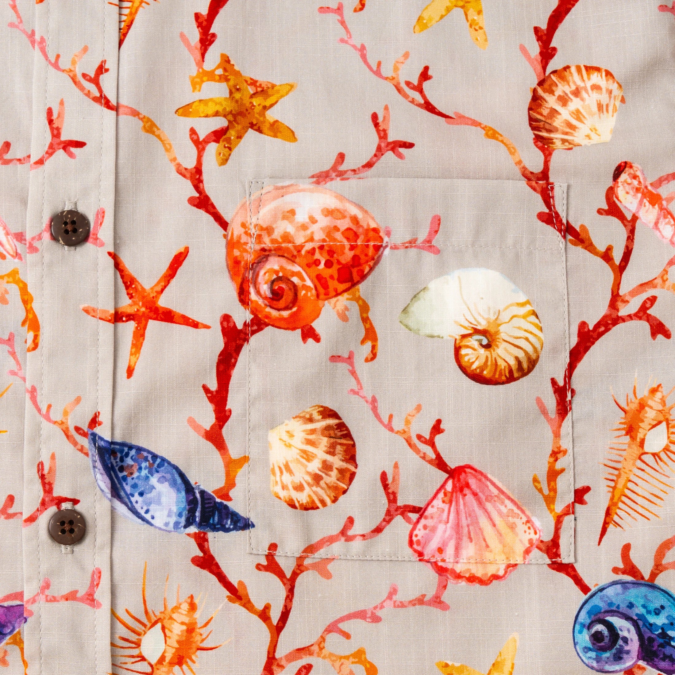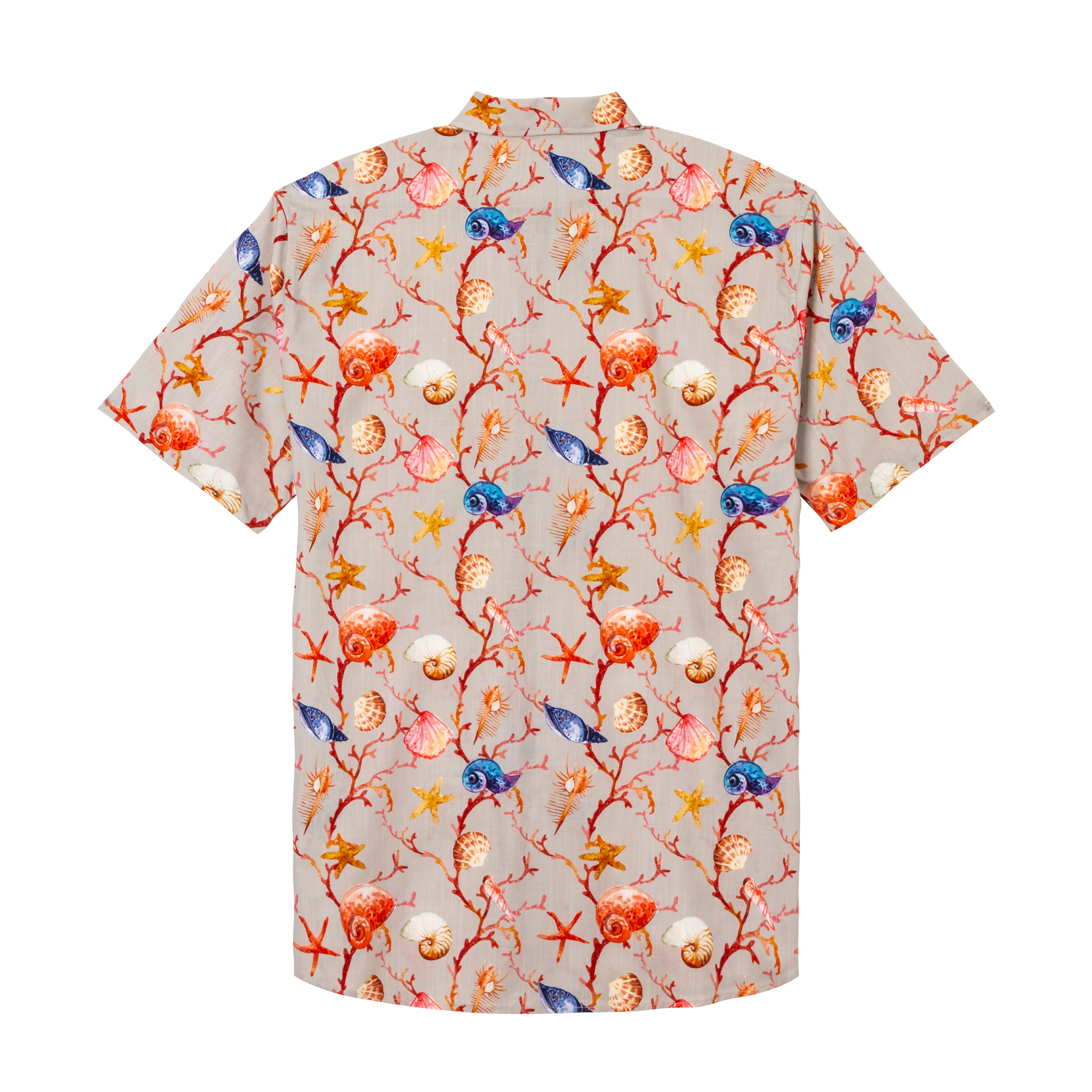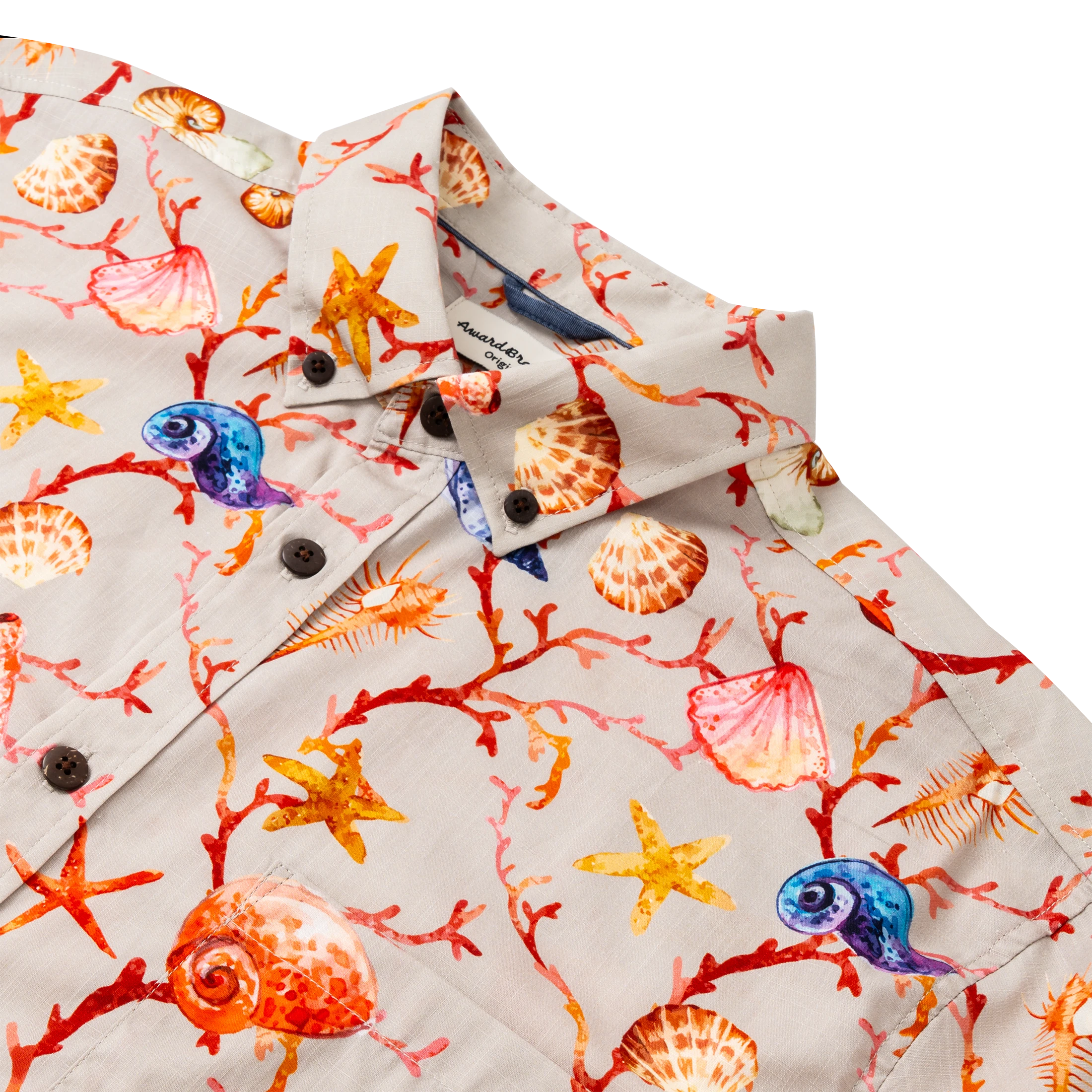 Hawaiian Shirt For Men Colorful Printing-Match Button-down 100% Cotton Short Sleeve Shirt Sand color Tropical Shell