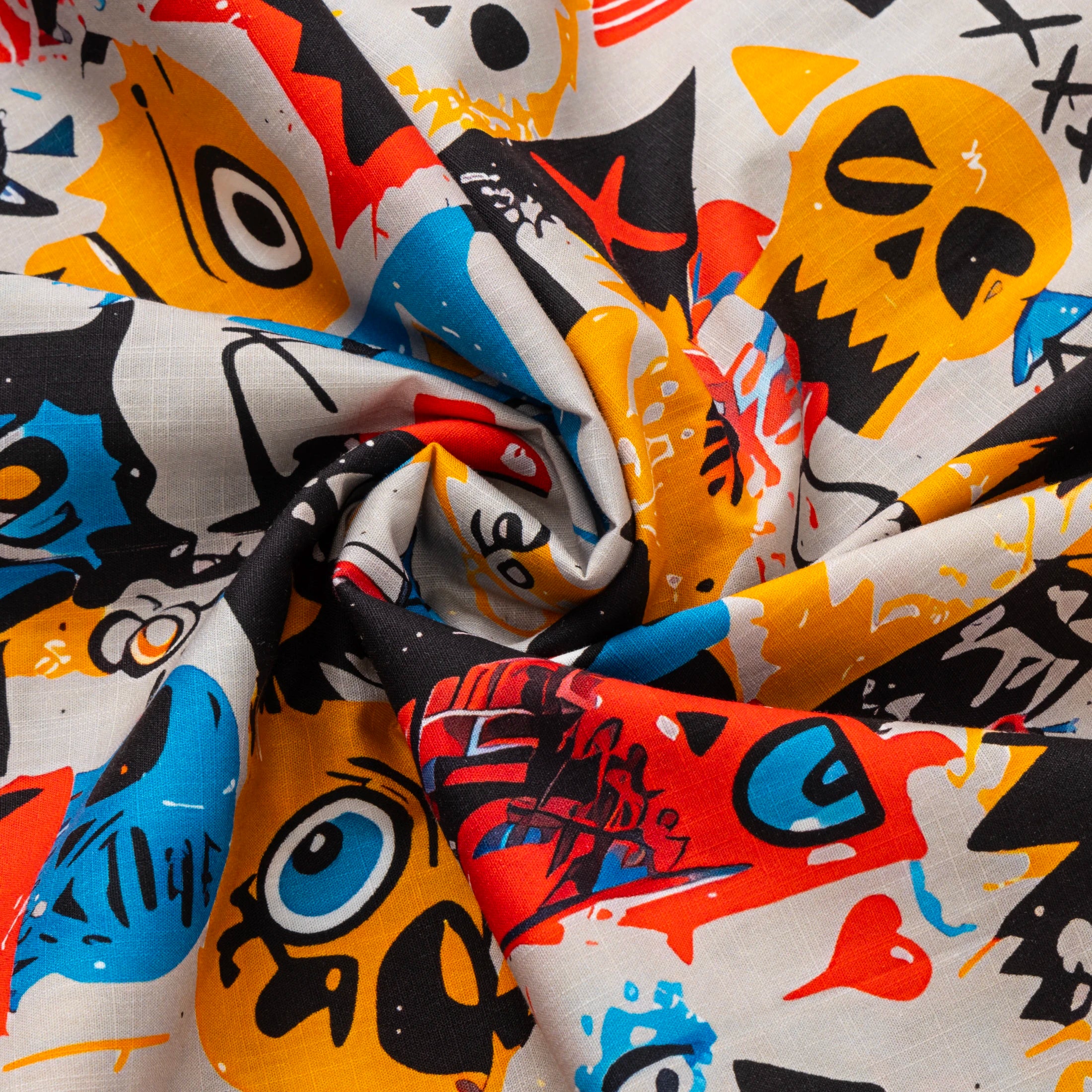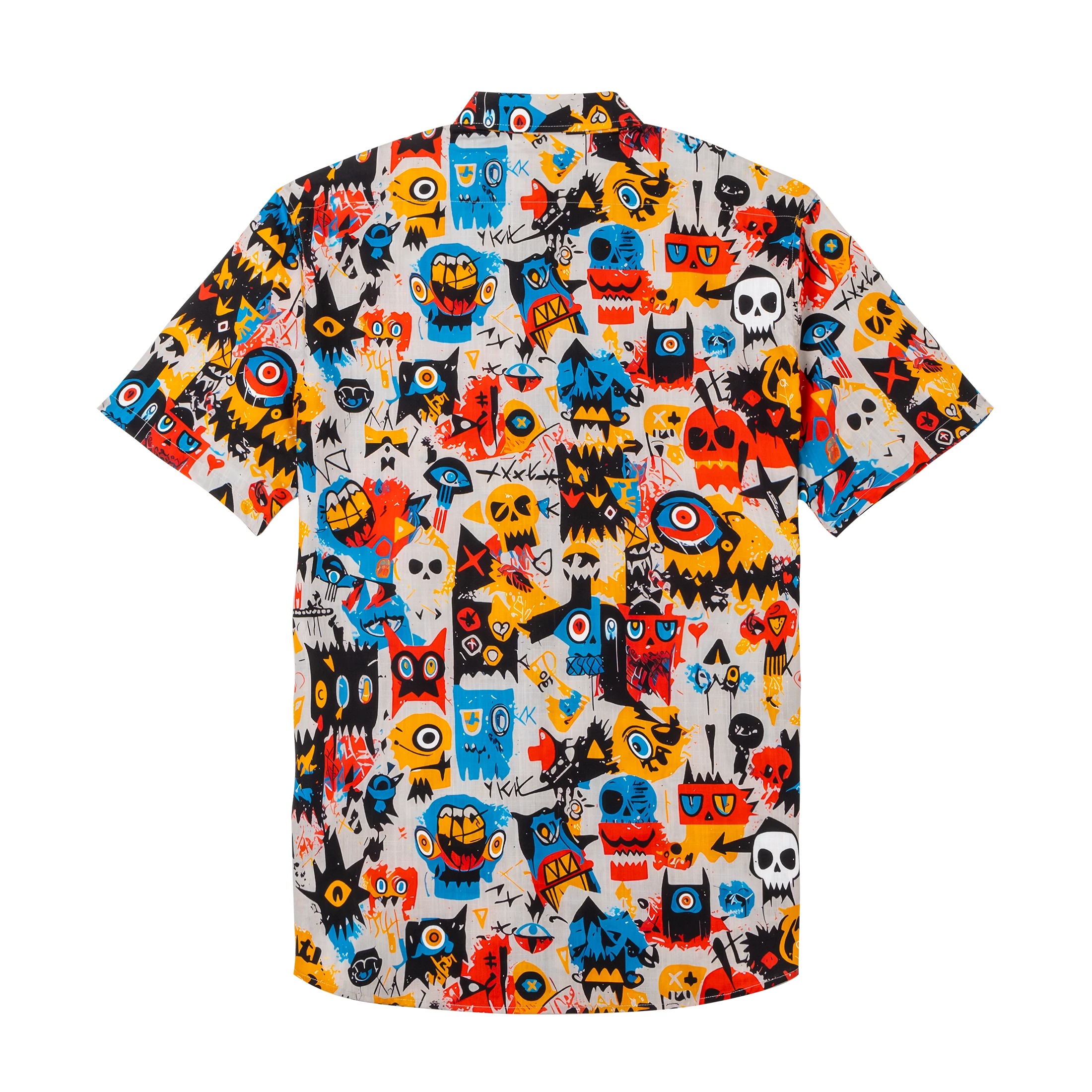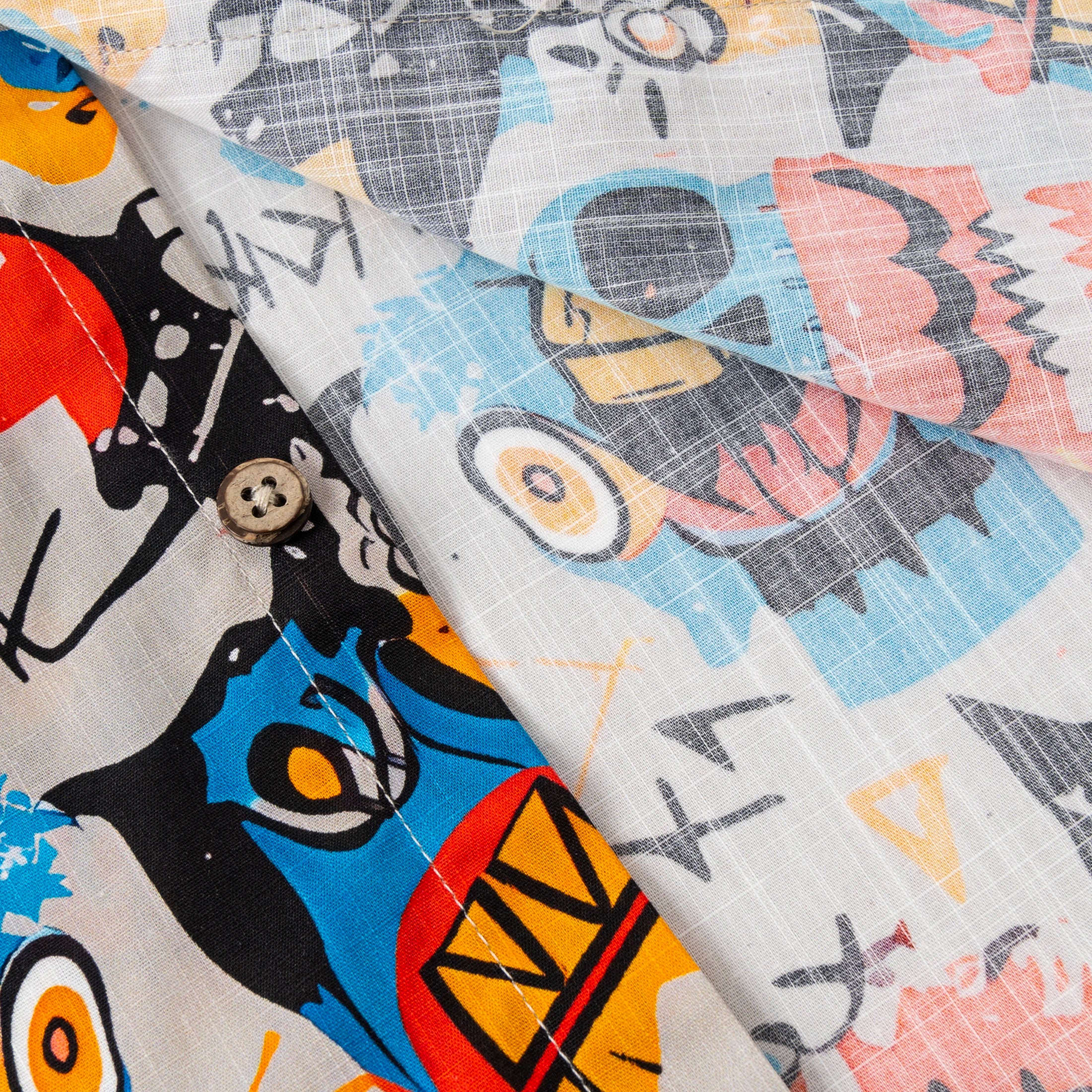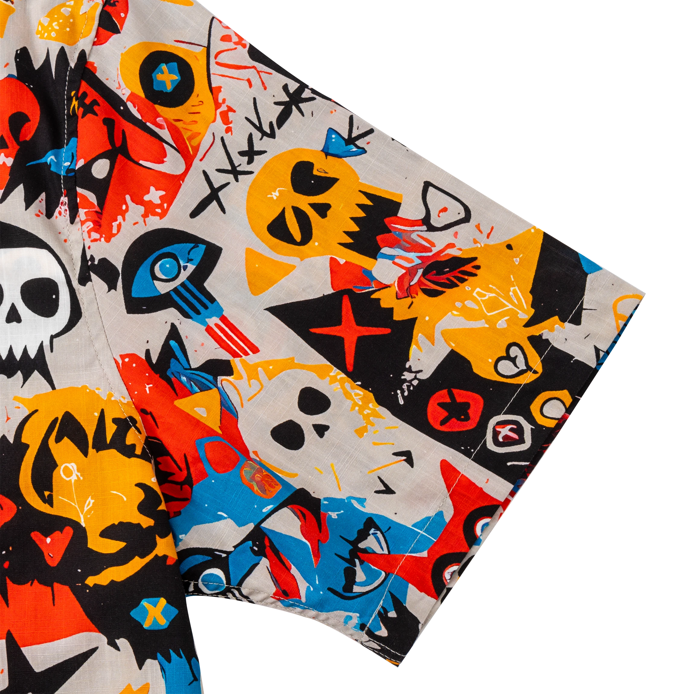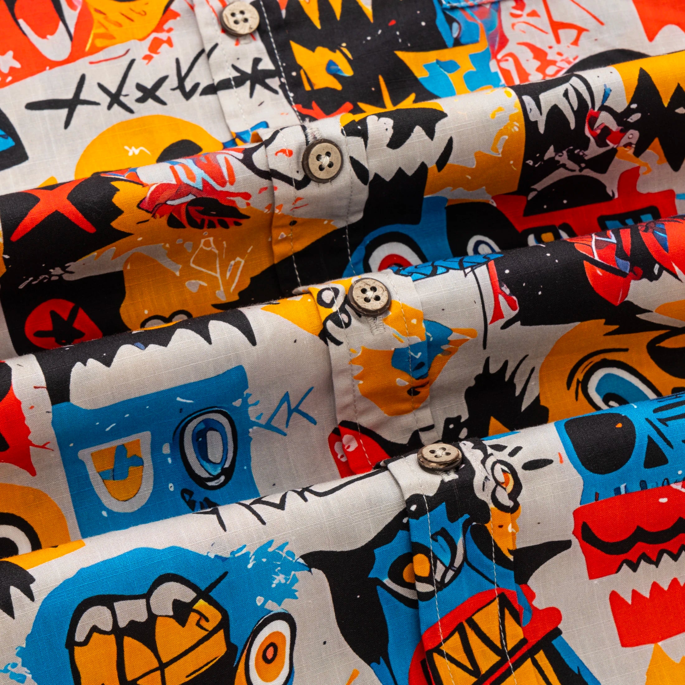 Hawaiian Shirt For Men Colorful Printing-Match Button-down 100% Cotton Short Sleeve Shirt Grey Graffiti