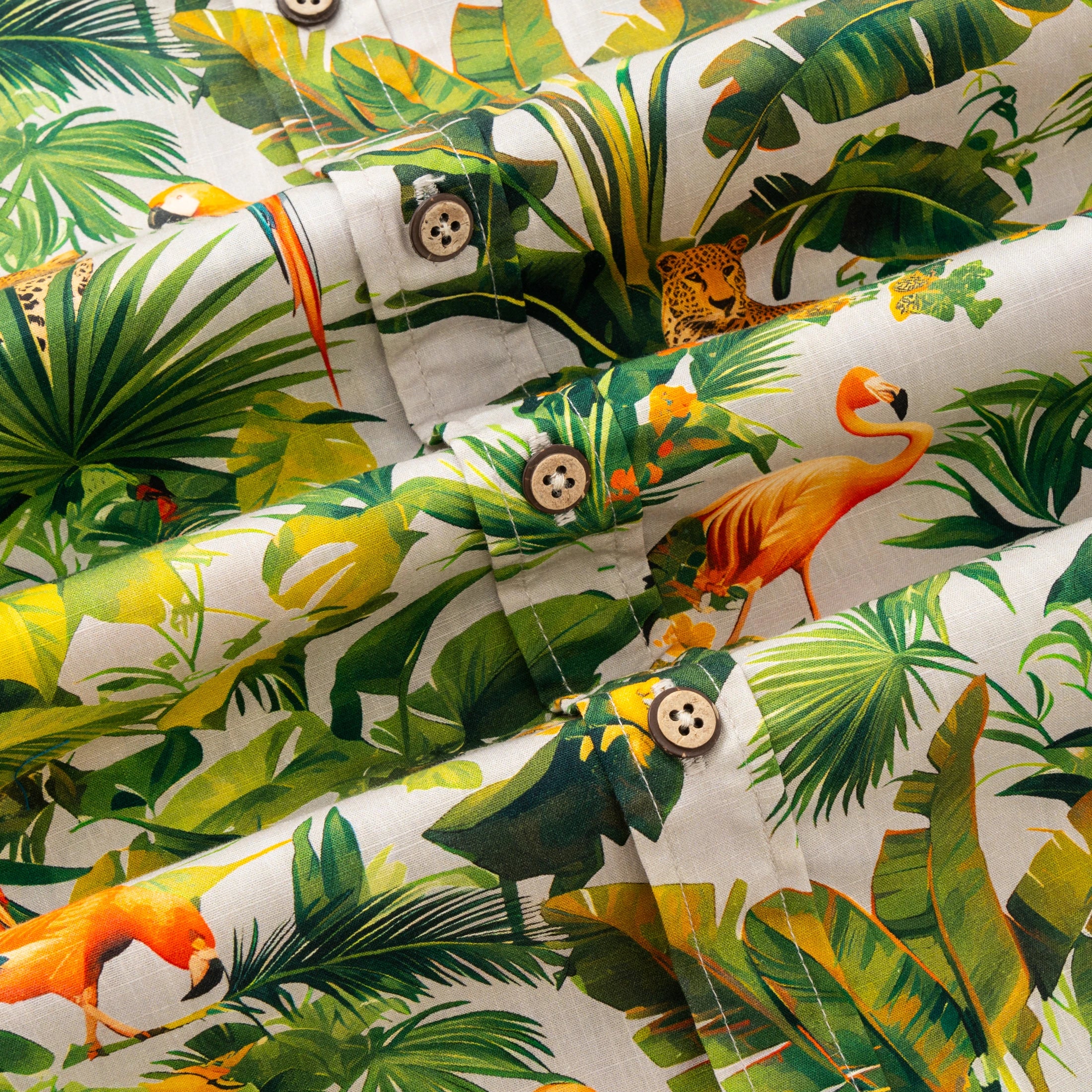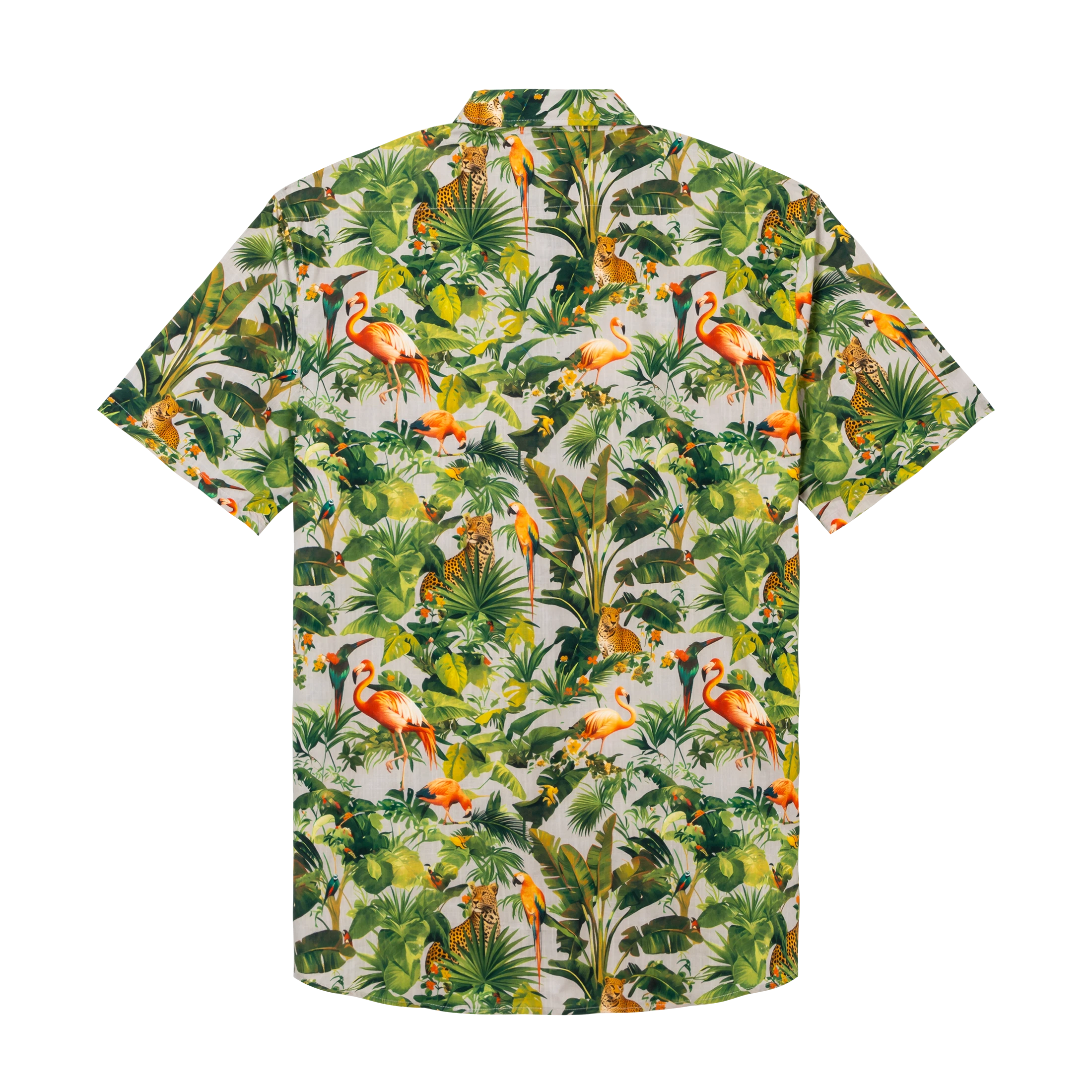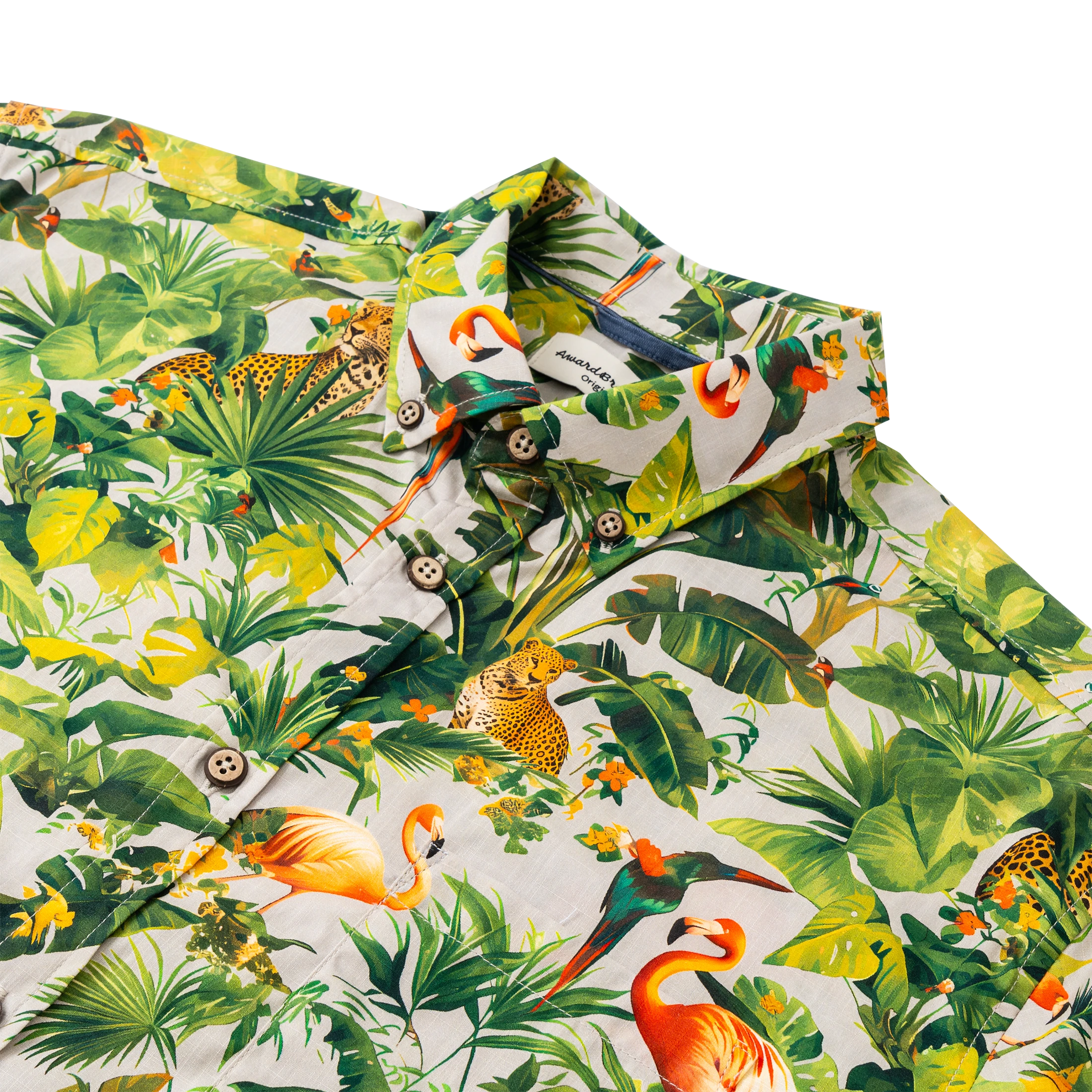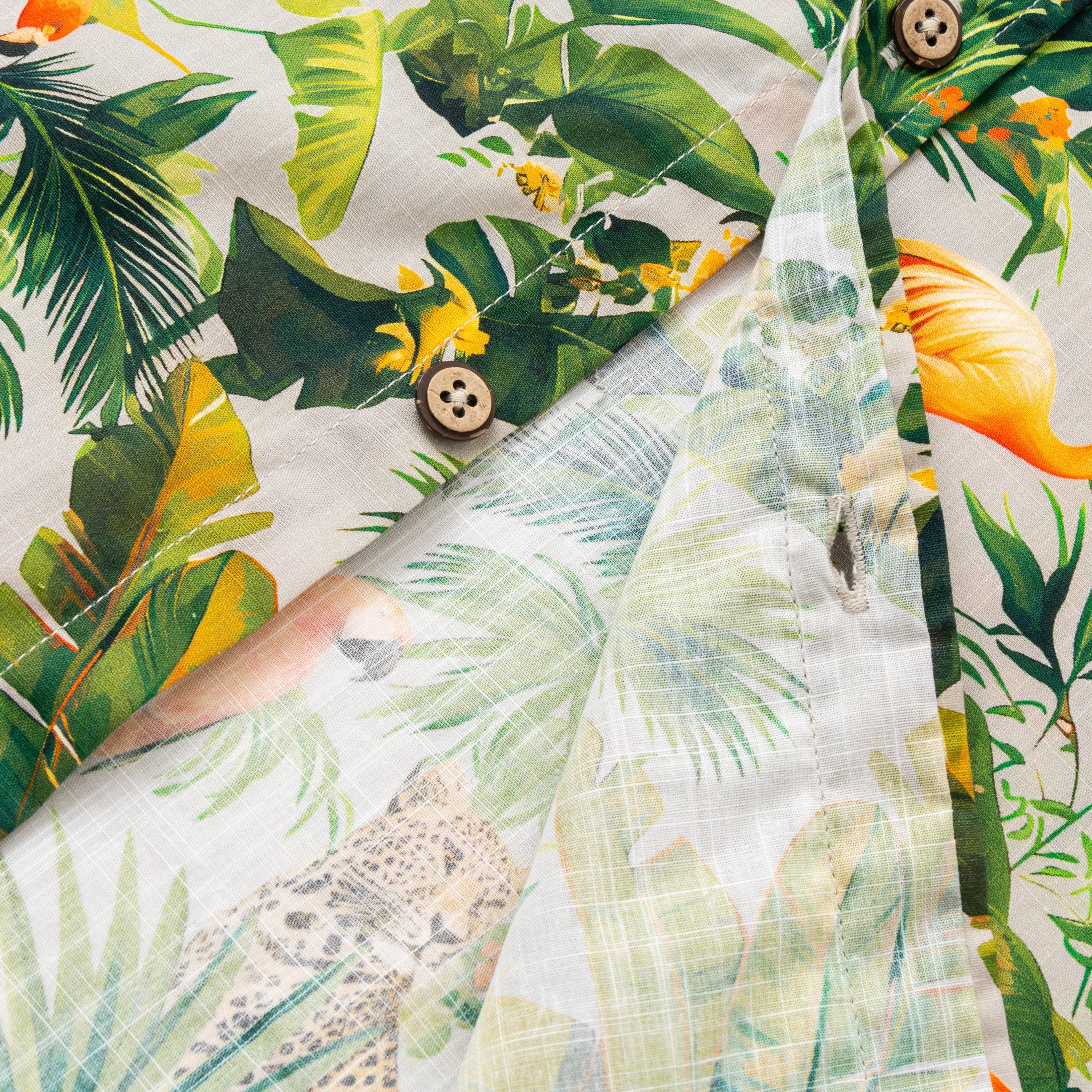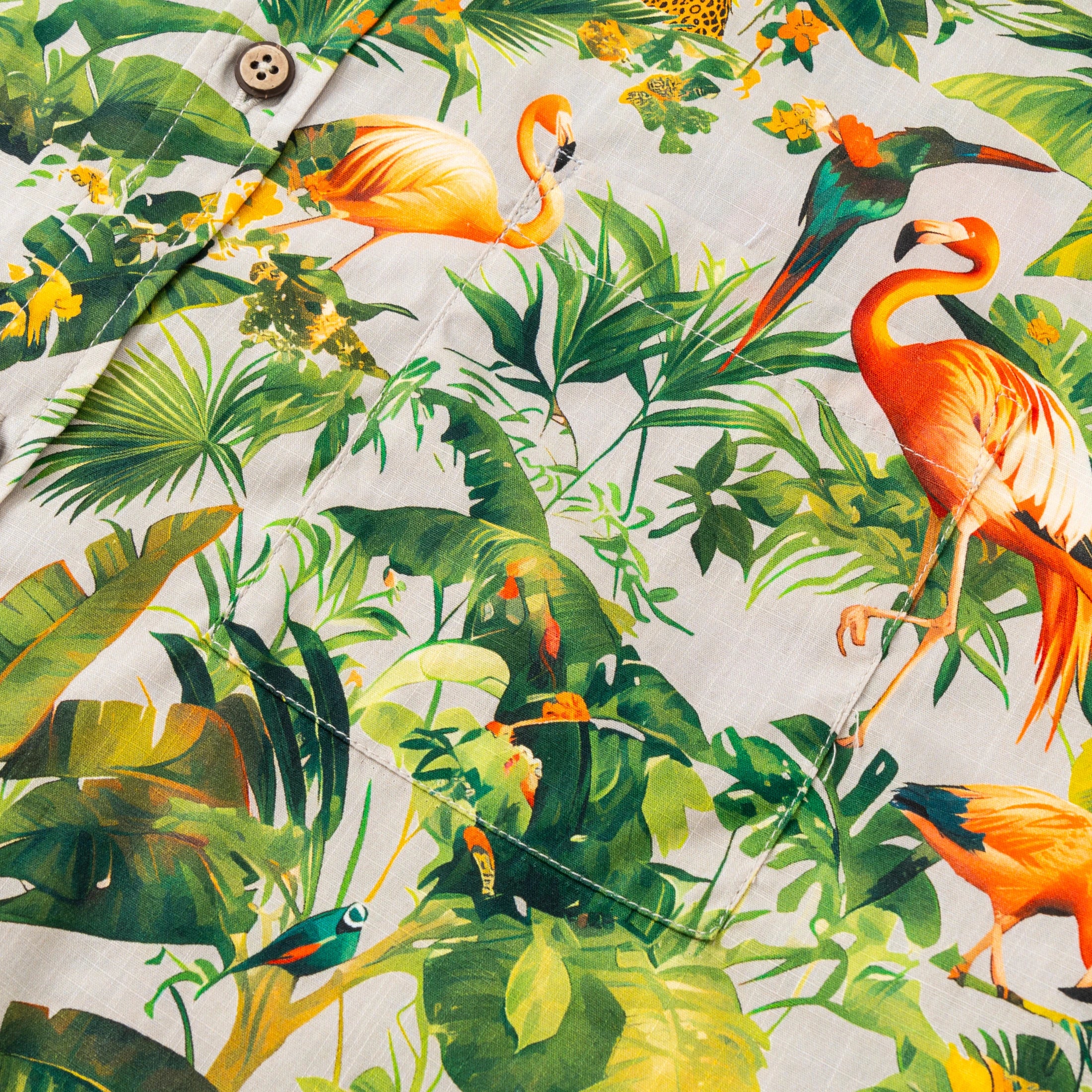Hawaiian Shirt For Men Colorful Printing-Match Button-down 100% Cotton Short Sleeve Shirt Grey Tropical