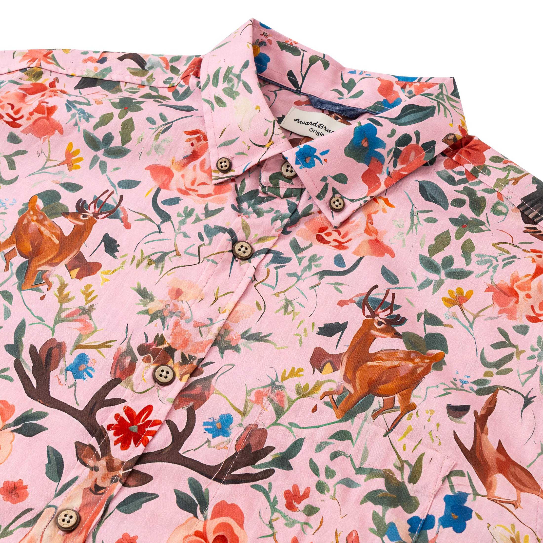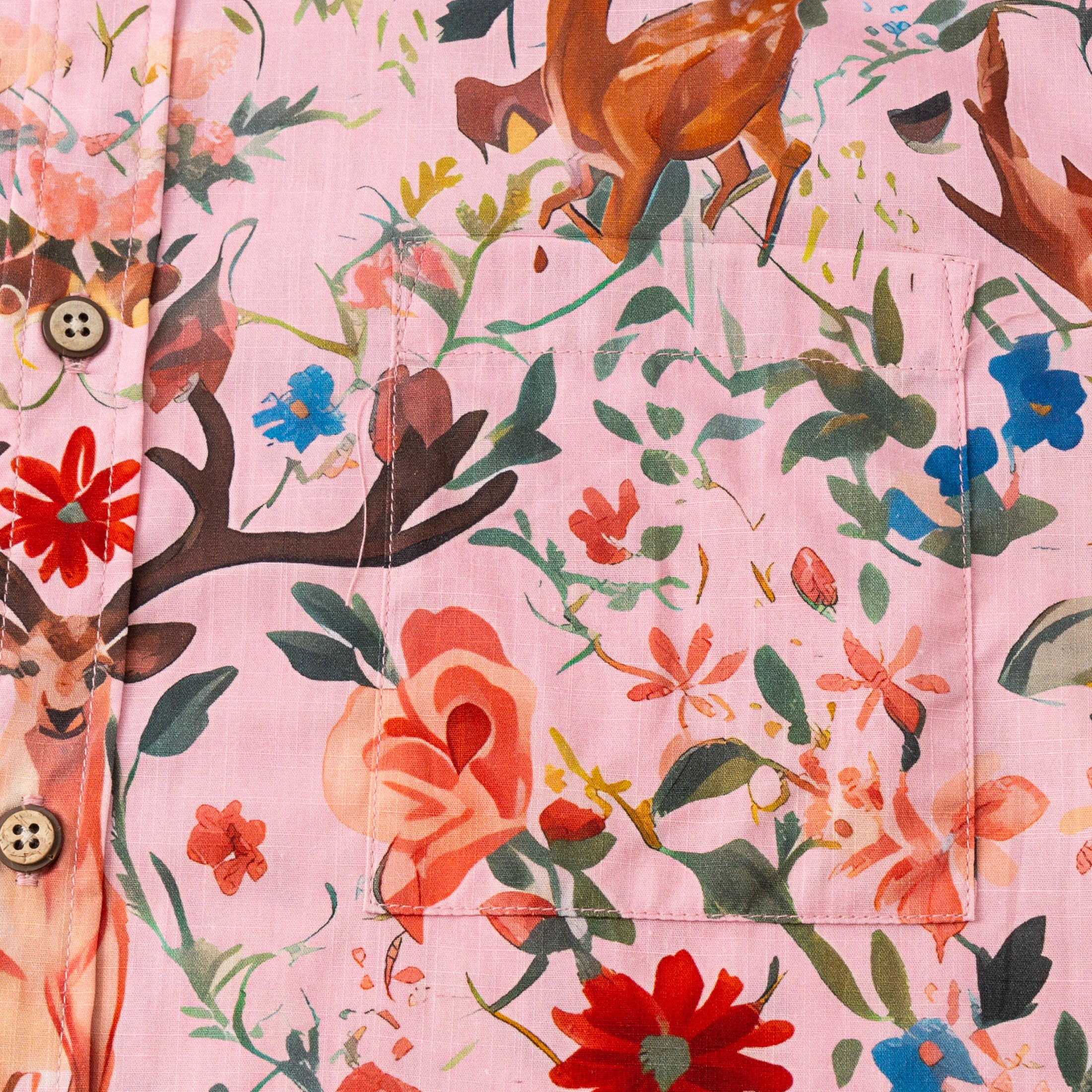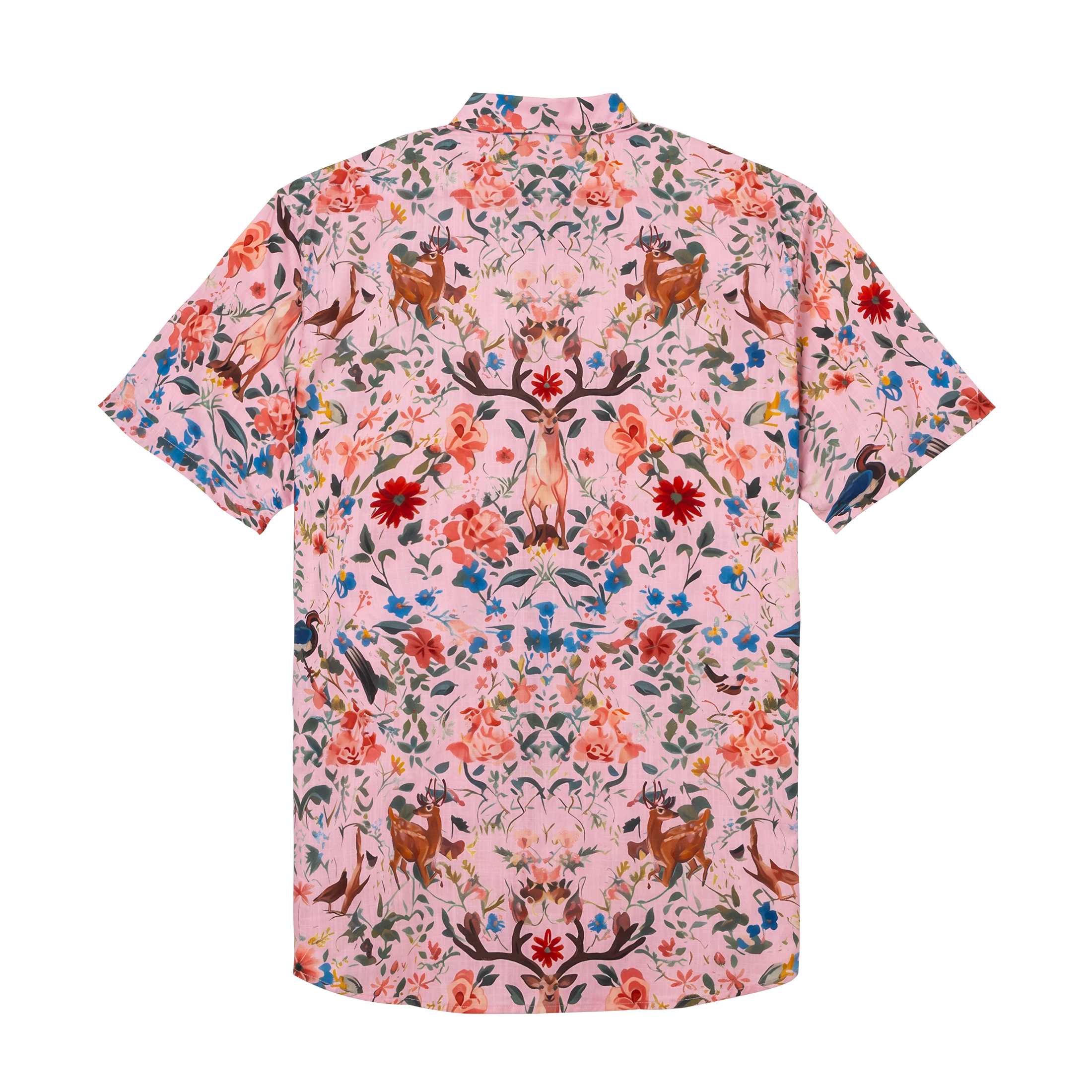 Hawaiian Shirt For Men Colorful Printing-Match Button-down 100% Cotton Short Sleeve Shirt Pink Floral Deer