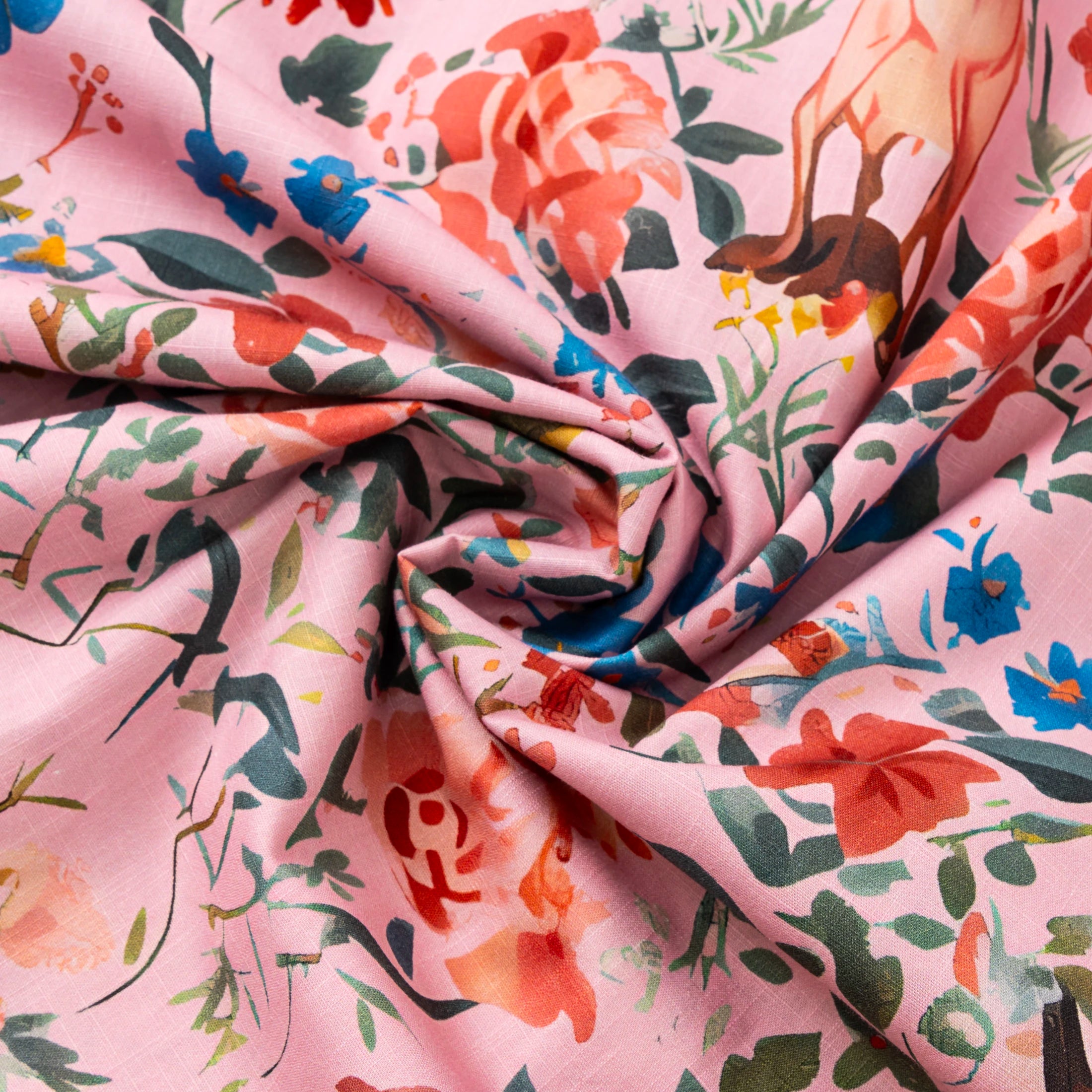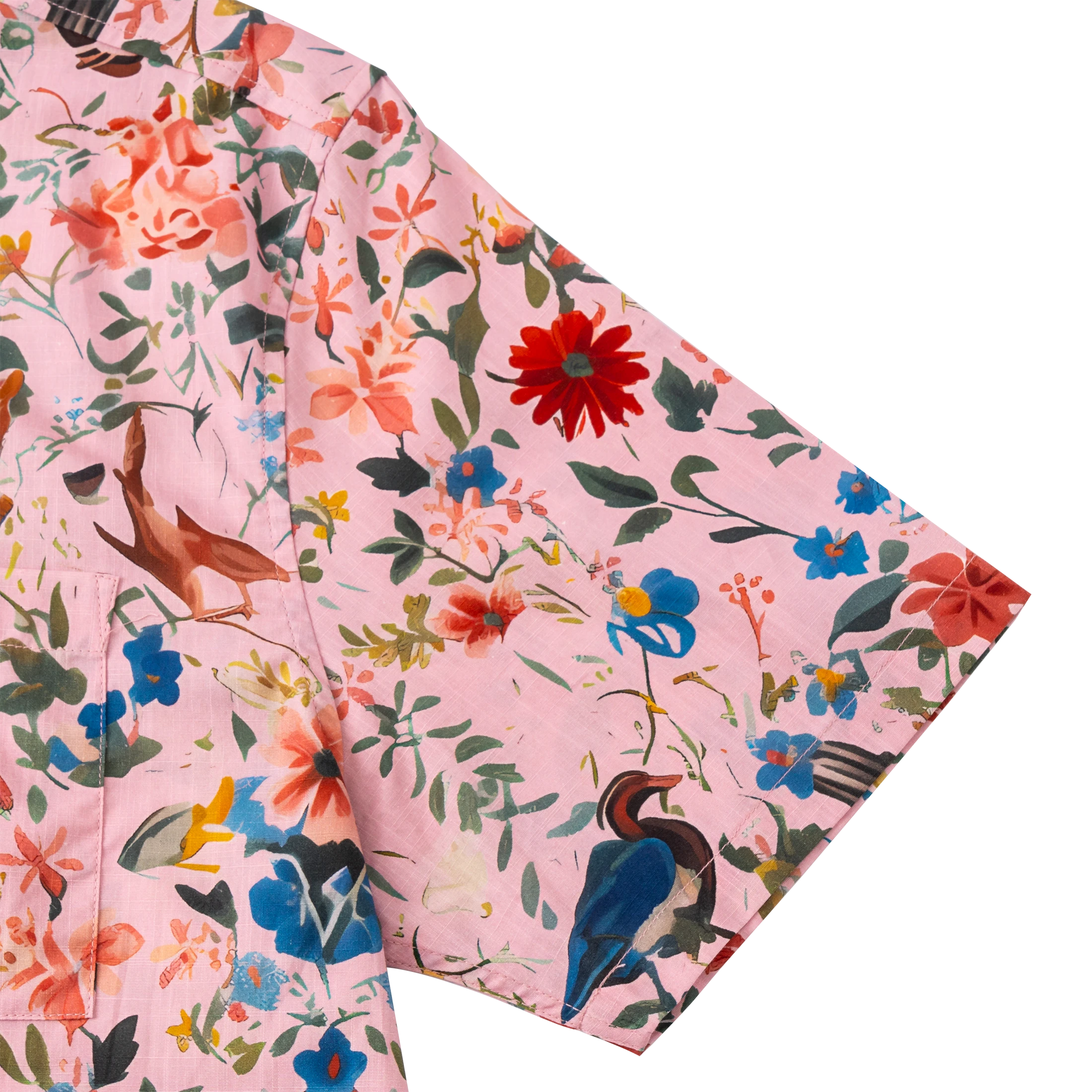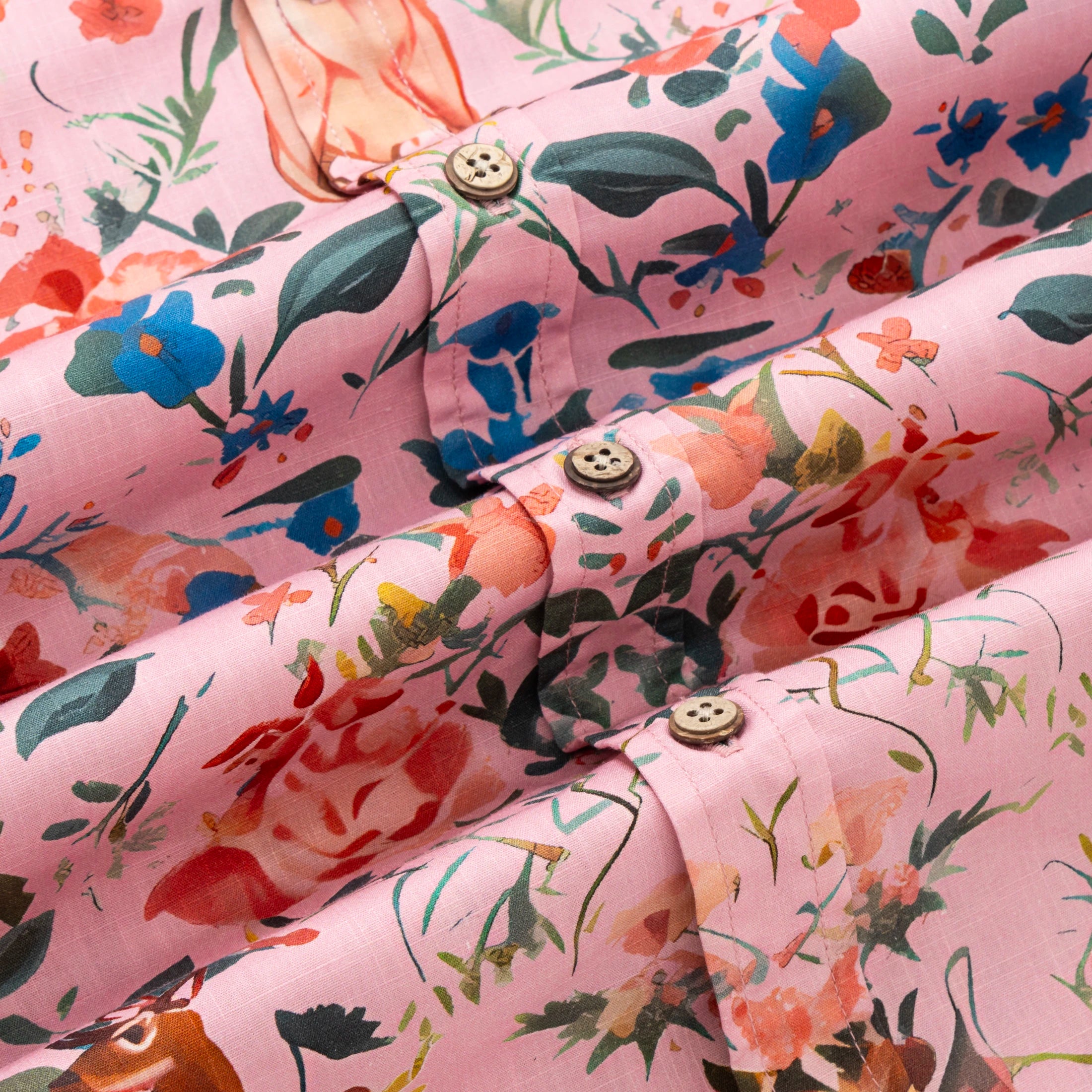 Hawaiian Shirt For Men Colorful Printing-Match Button-down 100% Cotton Short Sleeve Shirt Pink Floral Deer