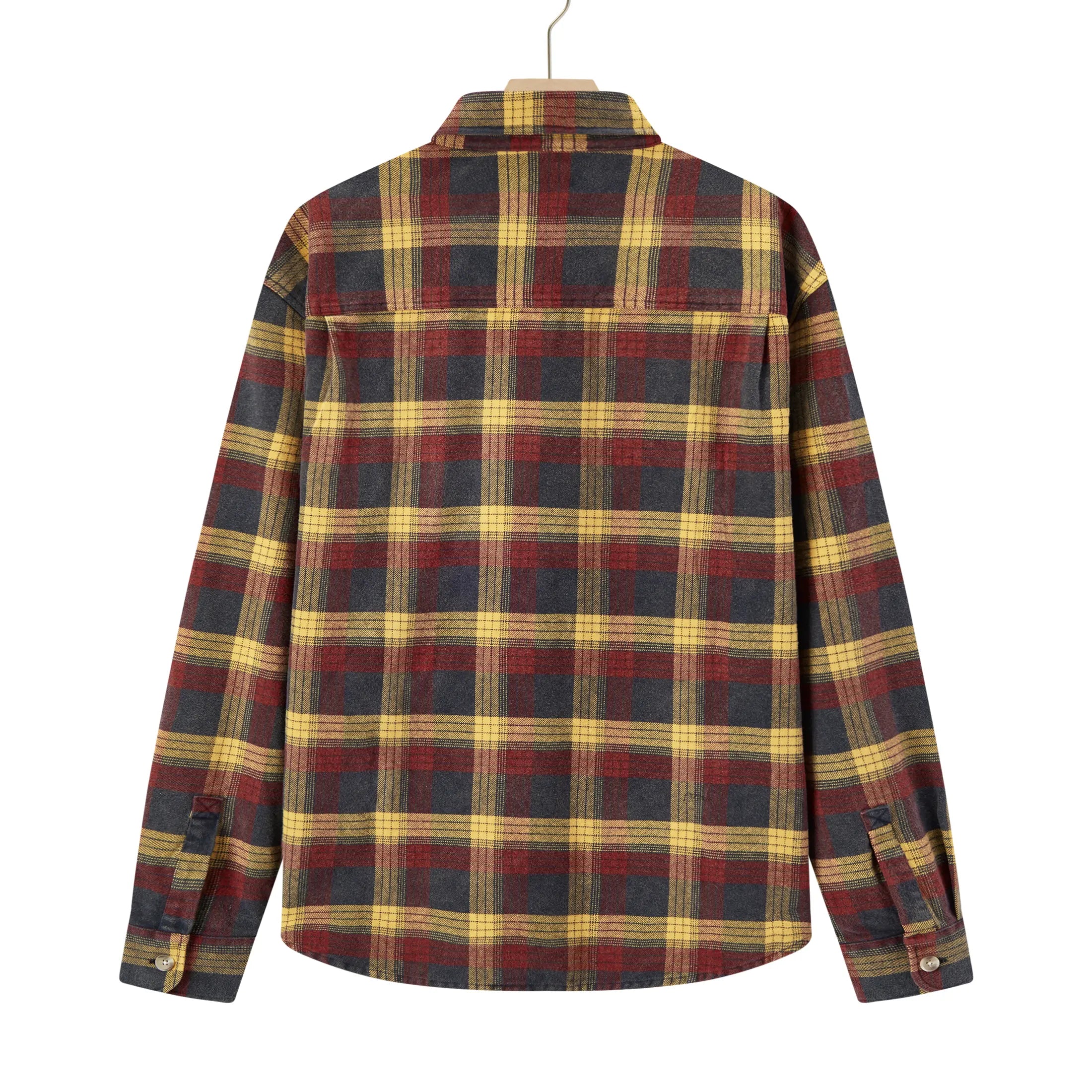 Heavyweight Flannel Vintage Men's Shirts Scottish Check 100% Cotton Long Sleeve