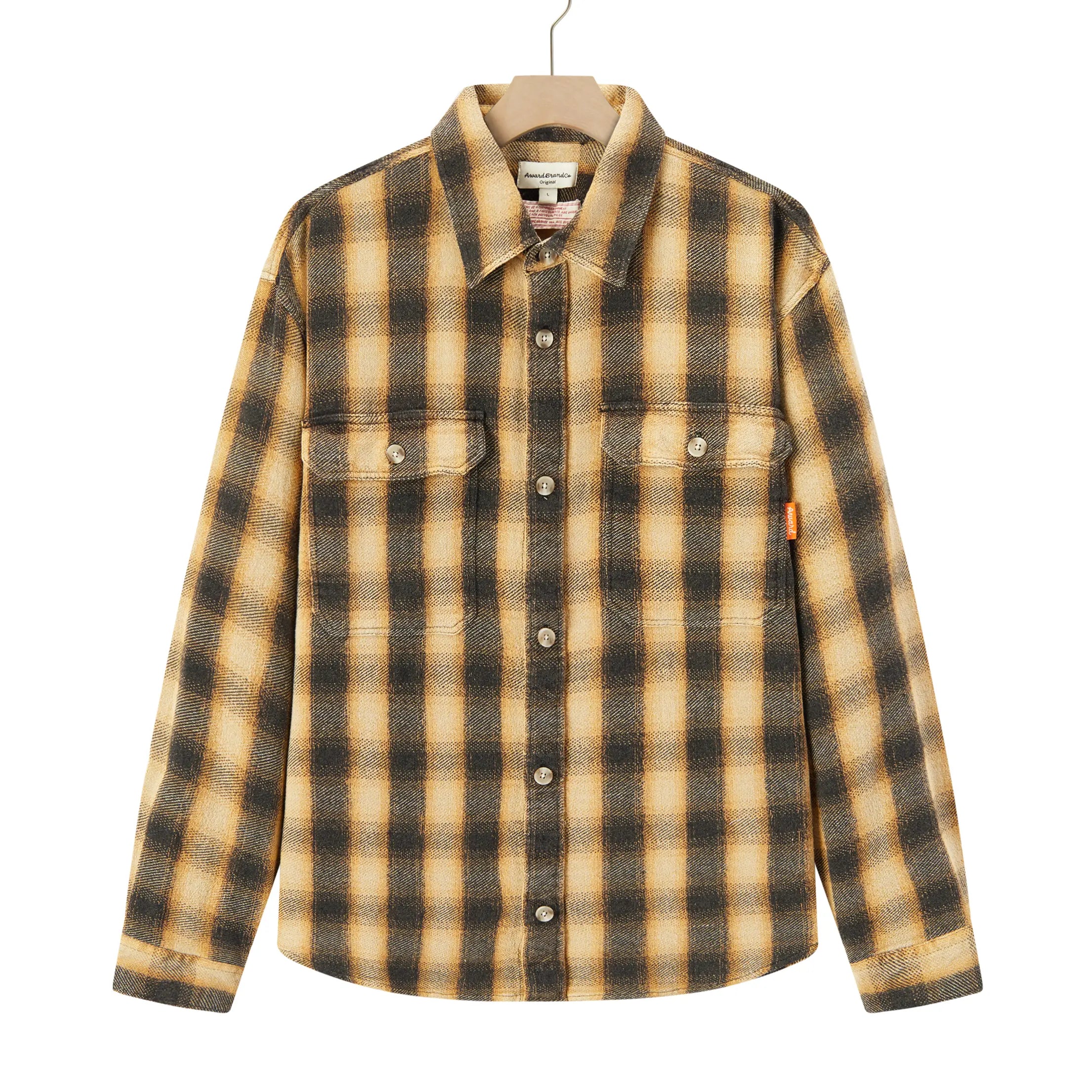 Men's Shirts Vintage Flannel Heavyweight Scottish Check 100% Cotton Long Sleeve
