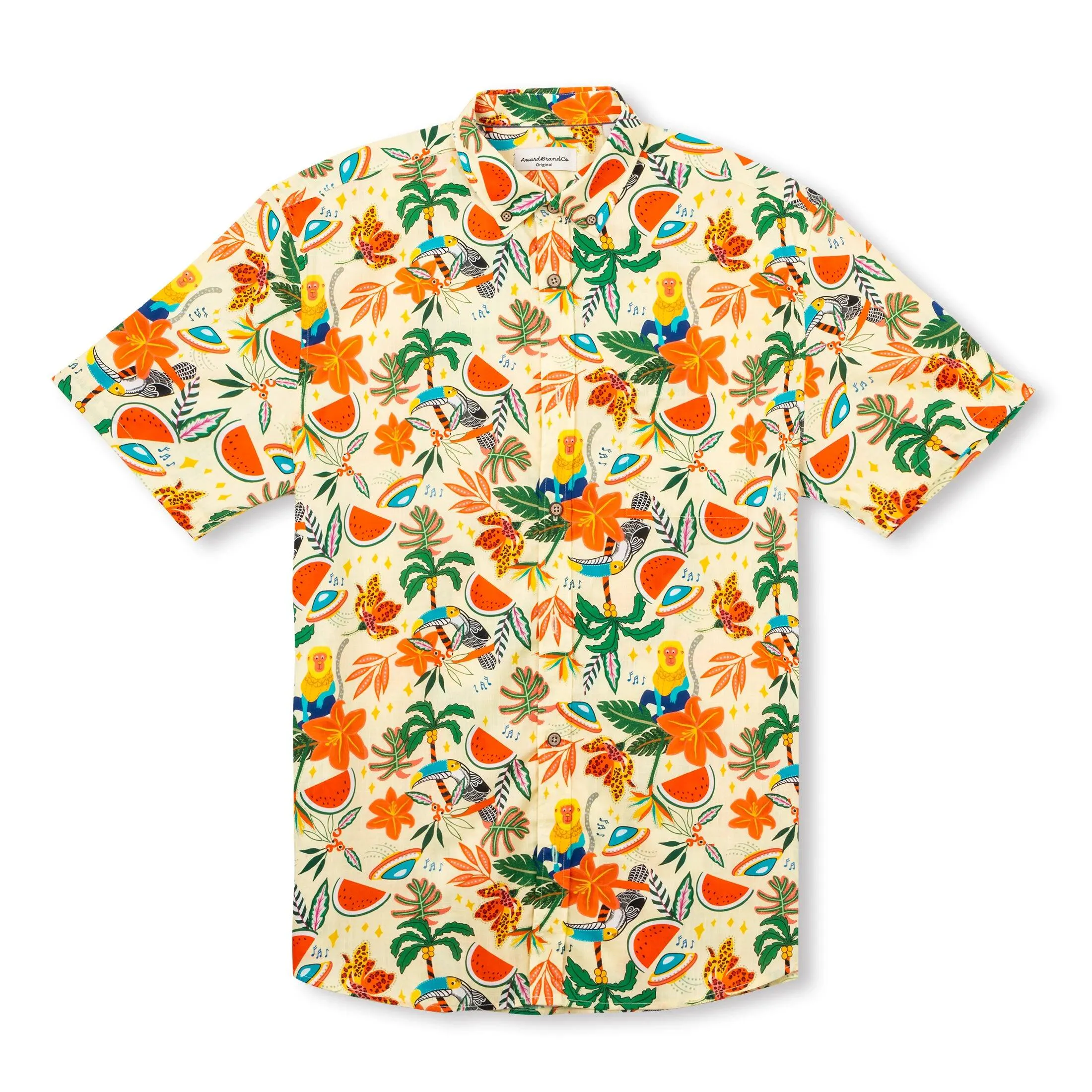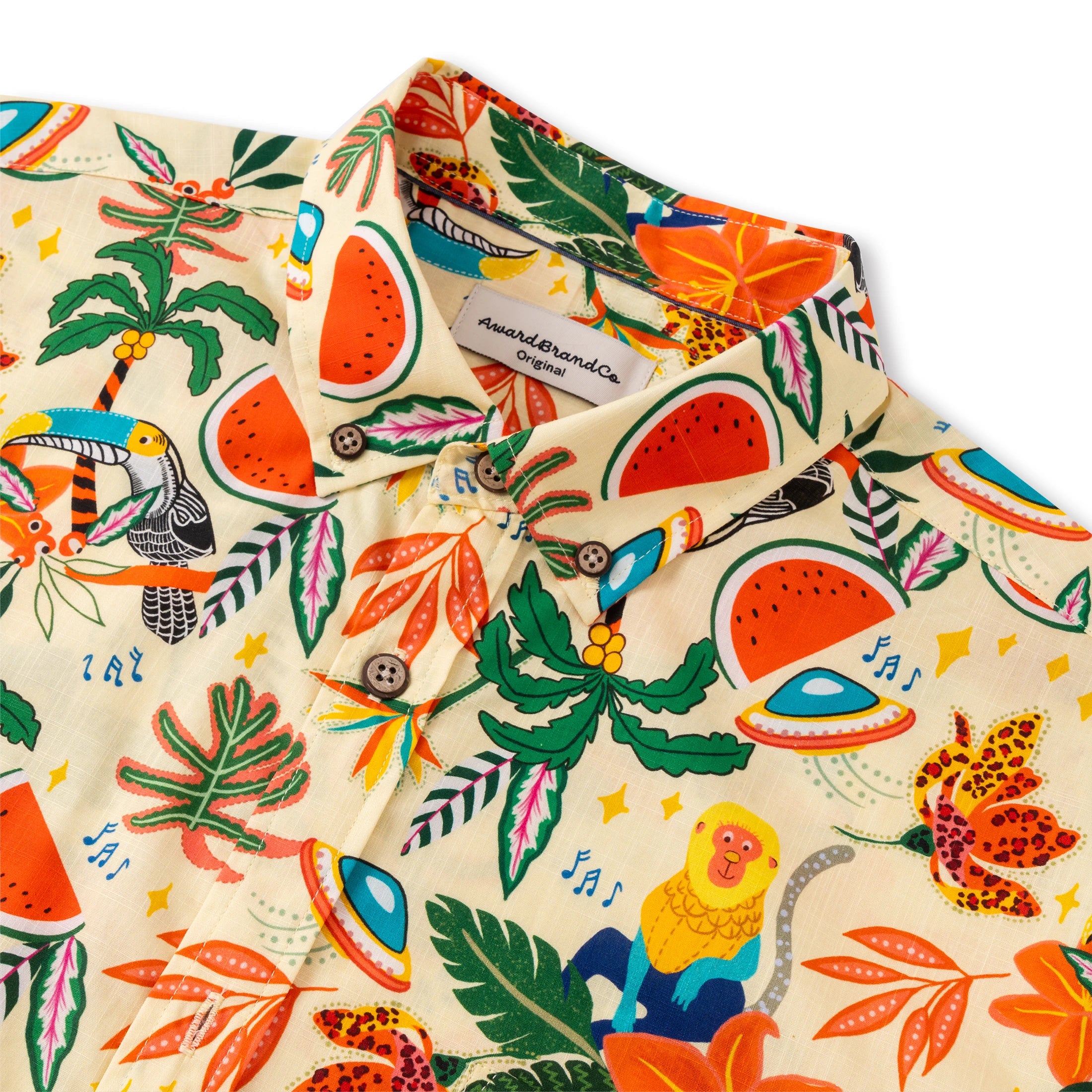 Hawaiian Shirt For Men Colorful Printing-Match Button-down 100% Cotton Short Sleeve Shirt