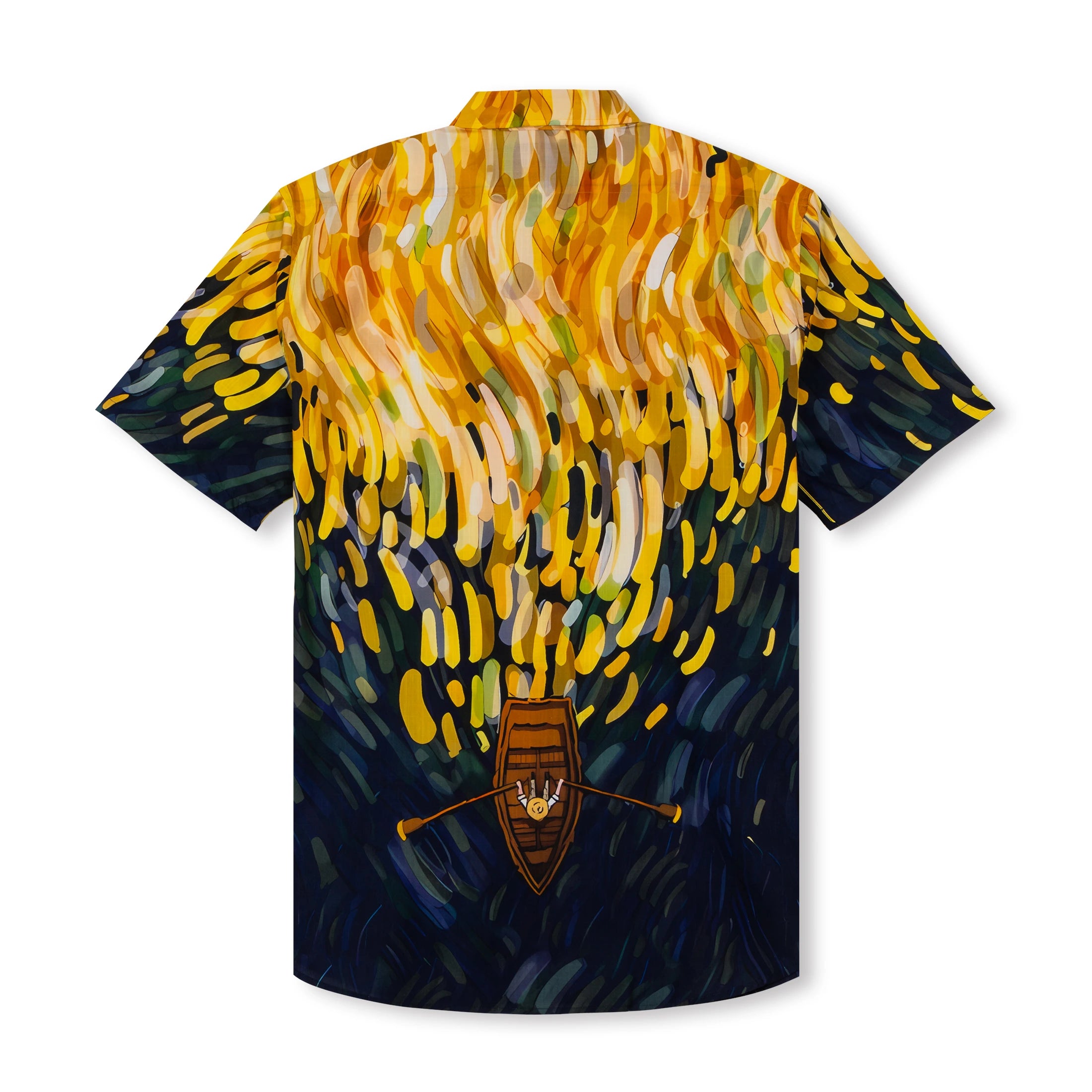 Hawaiian Shirt For Men Colorful Printing-Match Button-down 100% Cotton Short Sleeve Shirt